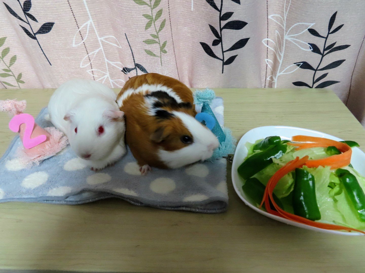 るんるん 可愛い可愛いモルモット達の2歳のお誕生日会 ずっとずーっと健康で長生きしてね モルモット